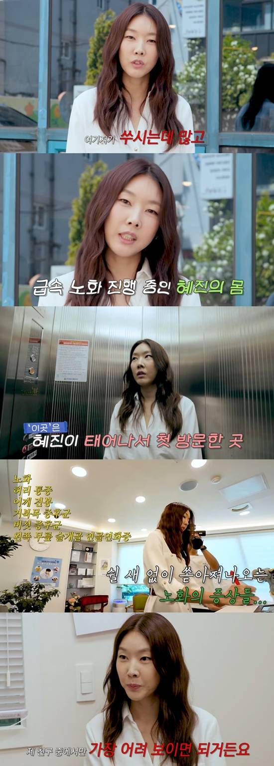 또 한혜진은 "첫 번째 증상에 노화가 진행되고 있다고 (썼다)"라고 말했다.