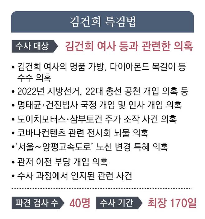 특검은 출범 즉시 검찰과 경찰의 기존 수사 내용을 인계받게 된다. 윤 전 대통령을 내란 우두머리(수괴) 혐의로 기소한 검찰 비상계엄특별수사본부는 지난달 30일 대통령경호처로부터 비화폰 서버를 임의 제출받아 포렌식을 진행하는 상황이었다. 도이치모터스 주가 조작 연루 의혹과 ‘건진법사’ 전성배 씨의 청탁 의혹 등 속도를 내던 김 여사 관련 수사도 모두 특검으로 인계된다.