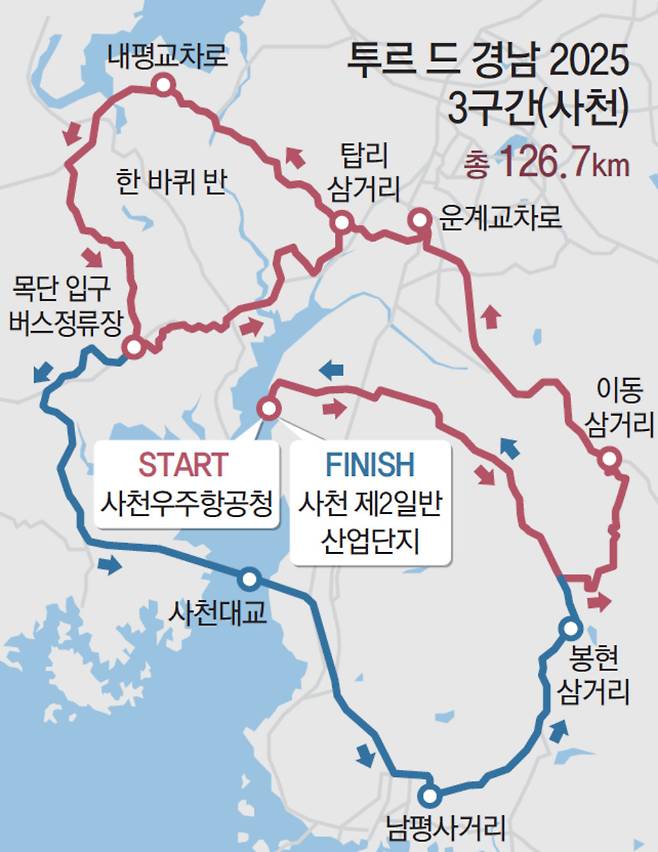 박 시장은 "지난달 개청 1년을 맞은 우주항공청을 중심으로 우주항공복합도시 조성에 힘을 쏟고 있는 시 입장에서 이번 대회는 사천을 전 세계에 알릴 절호의 기회"라며 "투르 드 경남을 통해 바다와 하늘, 육지를 아우르는 우주항공 및 해양관광 중심도시 브랜드를 더욱 강화해나갈 것"이라고 강조했다.