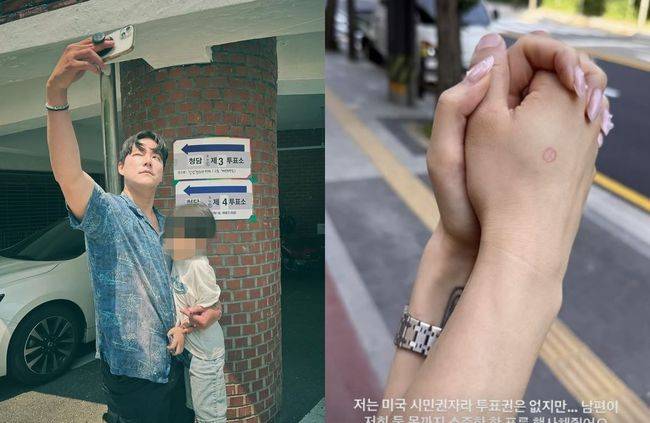 같은날 모델 아이린 역시 "저는 미국 시민권자라 투표권은 없지만, 남편이 저희 둘 몫까지 소중한 한 표를 행사해줬어요"라며 투표 인증샷을 올렸다. 사진에는 기표 도장이 찍힌 남편의 손을 맞잡고 있는 아이린의 손이 담겼다. 미국에서 태어난 탓에 투표권은 없지만, 남편을 따라 투표소를 찾아 인증샷을 남긴 모습이다.