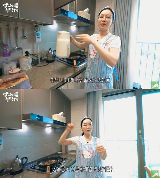 이후 음식을 준비하던 그는 "이거 너무 잘 쓰고 있다"라며 두유 제조기를 소개했다. 김정난은 "이걸로 죽이랑 두유 만들어 먹는데, 콩하고 견과류, 물 넣고 누르면 두유가 나온다"라며 "검은콩 지금 6개월 먹었는데, 진짜 머리숱이 너무 많고 흰머리가 안난다. 너무 신기하다"라고 비법을 전했다.