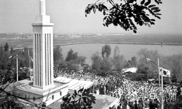 1970년 6월 6일 대구 수성못이 내려다 보이는 법이산 자락 충혼탑.