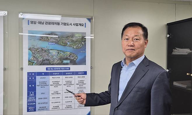 서순철(사진) 전남도 기업도시담당관은 5일 “2005년 서남해안 관광·레저형 기업도시 시범사업으로 최종 확정된 이후 20년 만에 빛을 보게 됐다”며 이같이 말했다. 서 담당관은 “전국에 7개 기업도시가 선정됐는데 이 중 하나가 영암·해남 기업도시”라며 “2013년 개발사업 착공 이후 약 5년 동안 공유수면 매립을 완료하고 2020년부터 본격적으로 사업을 추진할 수 있었다”고 설명했다.