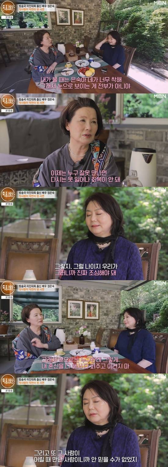 정은숙이 첫사랑의 말을 믿고 재혼했다고 밝혔다.