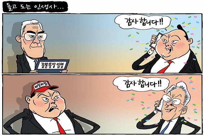 [김회룡의 시사 TOON] 김회룡 기자 2025. 6. 6. 08:00 음성으로 듣기 음성재생 설정 이동 통신망에서 음성 재생 시 데이터 요금이 발생할 수 있습니다. 글자 수 10,000자 초과 시 일부만 음성으로 제공합니다. 남성 여성 느림 보통 빠름 음성 재생하기 닫기 음성 재생 중지 번역 설정 번역beta Translated by kaka i 한국어 - English 영어 日本語 일본어 简体中文 중국어 Nederlands 네델란드어 Deutsch 독일어 Русский 러시아어 Malaysia 말레이시아어 বাঙ্গোল ভাষা 벵골어 tiếng Việt 베트남어 Español 스페인어 اللغة العربية 아랍어 Italiano 이탈리아어 bahasa Indonesia 인도네시아어 ภาษาไทย 태국어 Türkçe 튀르키에어 Português 포르투갈어 Français 프랑스어 हिन्दी 힌디어 닫기 번역중 Now in translation 글씨크기 조절하기 글자크기 설정 파란원을 좌우로 움직이시면 글자크기가 변경 됩니다. 가 매우 작은 폰트 작은 폰트 보통 폰트 큰 폰트 매우 큰 폰트 가 이 글자크기로 변경됩니다. (예시) 가장 빠른 뉴스가 있고 다양한 정보, 쌍방향 소통이 숨쉬는 다음뉴스를 만나보세요. 다음뉴스는 국내외 주요이슈와 실시간 속보, 문화생활 및 다양한 분야의 뉴스를 입체적으로 전달하고 있습니다. 닫기 인쇄하기 (시사저널=김회룡 기자) Copyright © 시사저널. 무단전재 및 재배포 금지.