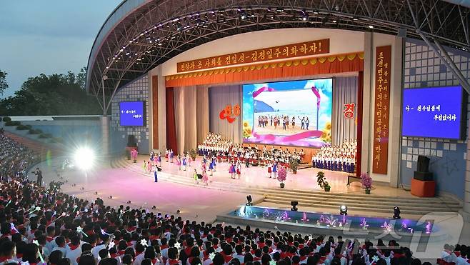 (평양 노동신문=뉴스1) = 북한 노동당 기관지 노동신문은 6일 조선소년단 창립 79주년을 맞아 학생들의 종합공연 '사회주의 조국을 위해 항상 준비'가 평양시청년공원야외극장에서 진행됐다고 보도했다.