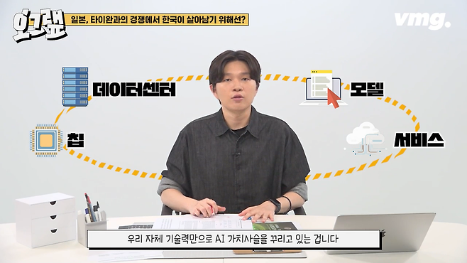 그렇다면 우리나라는 어떨까요? 대한민국 환경을 따지고 보면 나쁘지만은 않습니다. 일본, 타이완과 비교해서 우리나라는 우리나라 기업들만으로 AI 생태계를 꾸릴 수 있는 환경이 갖춰져 있다는 장점이 있어요.