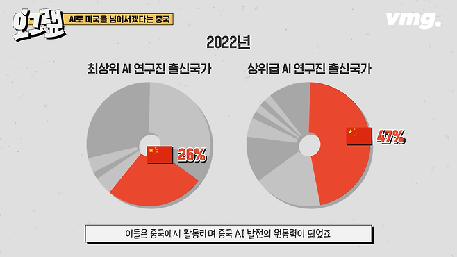 첫 번째 국가는 중국입니다. 뭐 사실 중국은 누가 뭐래도 AI 글로벌 2위 강국으로 우뚝 서 있죠. 중국은 아시아 1위를 넘어서 글로벌 1위를 노리고 있습니다.