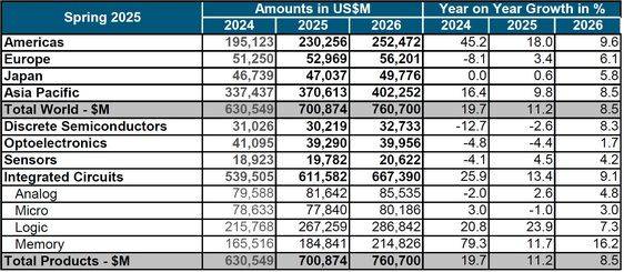 WSTS는 올해 AI(인공지능), 클라우드 시설, 첨단 소비자 전자제품 등에서 수요가 늘고 있다고 진단했다.