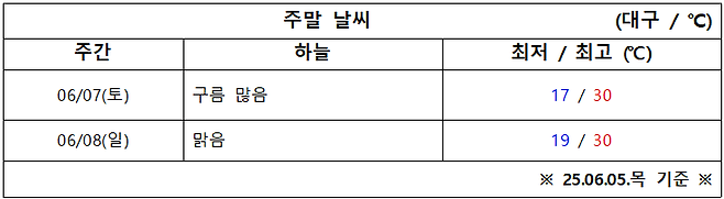 6월 1주 차 대구·경북 주말 ‘날씨 체크’