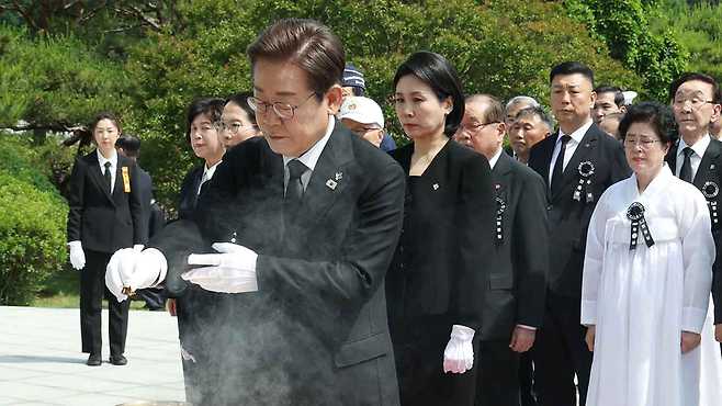 - 이재명, 현충일 추념식 "독립운동 3대 망하고, 친일 3대 흥한다는 말 사라져야"