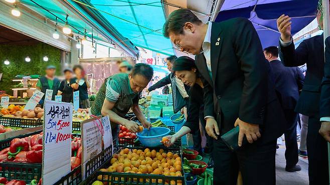 이 대통령은 배우자 김혜경 여사와 함께 이날 오전 11시쯤 서울 동작구 사당동의 남성사계시장을 약 23분간 방문했습니다.