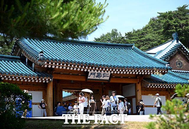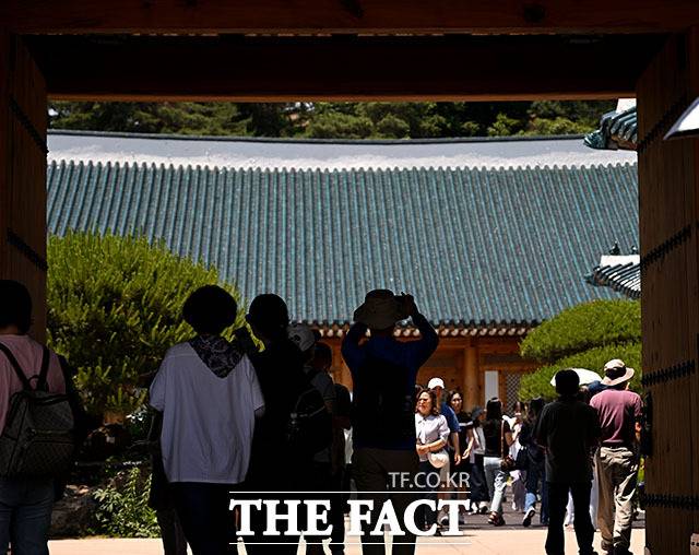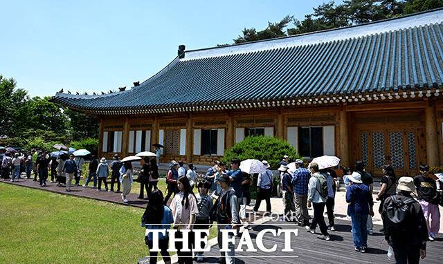 [더팩트ㅣ이효균 기자] 5일 오후 서울 종로구 청와대 대통령 관저가 관람객들로 붐비고 있다.