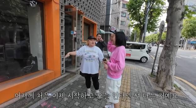 이를 들은 장윤정은 "여기서? 실제로? 진짜로?"라며 연신 되물었고, 홍윤화는 "네. 공사중이에요"라고 공사가 한창인 빈 상가를 가리켰다.