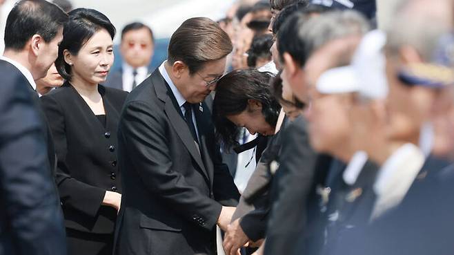 이재명 대통령은 지난달 해군 해상초계기 추락 사고로 순직한 장병의 유족을 오늘(6일) 현충일 추념식에 초청해 위로했습니다.