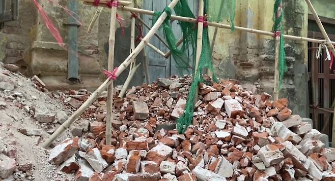 | ▲ 만달레이 내 붕괴된 건물의 흔적 |