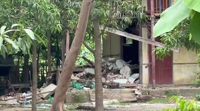 | ▲ 메이크틸라 평화도서관 학생의 가옥이 지진 피해를 받은 모습 |