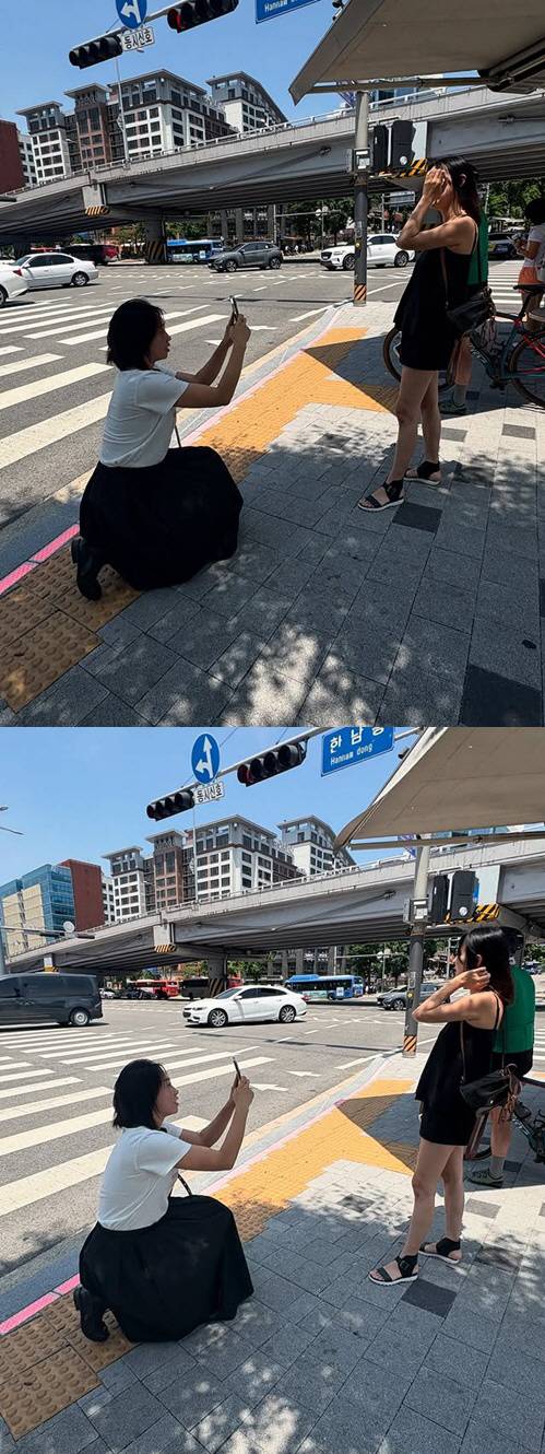 사진 속 이지혜는 민소매에 미니원피스를 입고 포즈를 취하고 있는 모습. 특히 이지혜는 이미도의 헌신적인 노력으로 더욱 늘씬하고 예쁘게 사진이 찍혀 눈길을 끈다.
