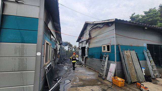 이 불로 공장 관계자 1명이 1도 화상을 입고, 각각 99제곱미터, 82.5제곱미터 규모의 조립식 건물 2개동 일부가 불에 탔습니다.
