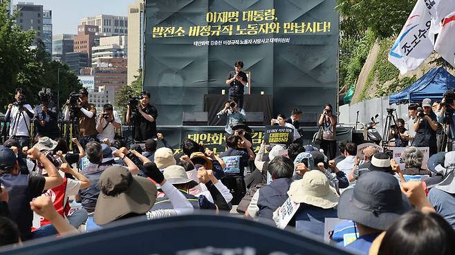 이들은 "더 이상 죽지 않게 대통령이 해결하라", "위험의 외주화를 중단하고 정규직화를 이행하라"등의 구호를 외쳤습니다.