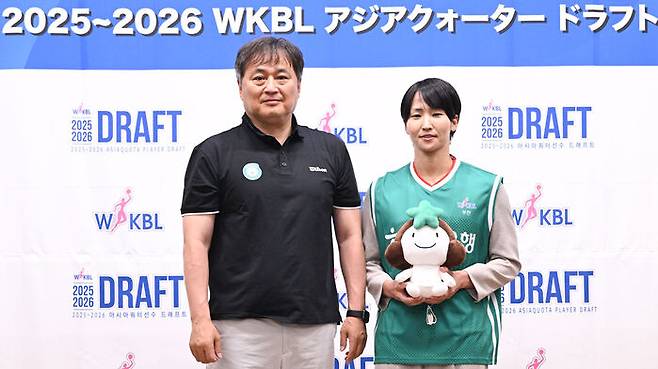 이이지마는 오늘 일본 도쿄 올림픽기념청소년센터 3층에서 열린 2025-2026 한국여자농구연맹(WKBL) 아시아쿼터선수 드래프트에서 1라운드 1순위 지명권을 가진 하나은행의 선택을 받았습니다.