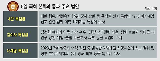 내란 특검법과 채상병 특검법, 김건희 특검법이 지난 5일 국회 본회의를 통과하면서 '3개 특검' 동시 가동이 현실화 됐다.