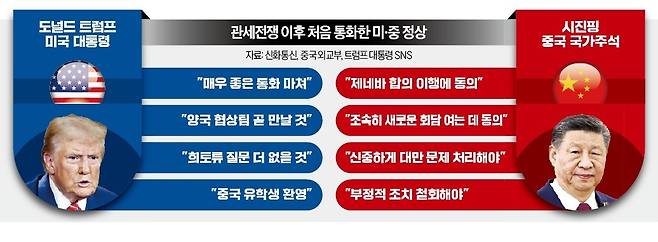 6일 중국 외교부와 신화통신 등에 따르면 전날 트럼프 대통령과 시 주석은 통화에서 무역·인적 교류 갈등을 종식하고 무역 협상을 재개하기로 합의했다. 관세 전쟁 2라운드를 방불케 한 미·중 무역 갈등의 핵심인 중국 희토류 수출 제한 문제를 집중 논의한 것으로 알려졌다. 양국 정상의 통화는 트럼프 2기 행정부 출범 직전인 지난 1월 17일 이후 처음이다.