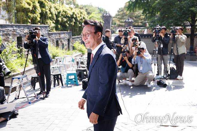| ▲ 이재명 정부 초대 총리로 지명받은 김민석 전 더불어민주당 의원이 5일 오전 서울 종로구 금융감독원 연수원에서 첫 출근을 하고 있다. |