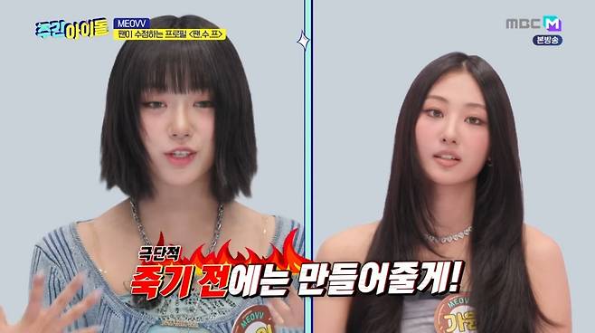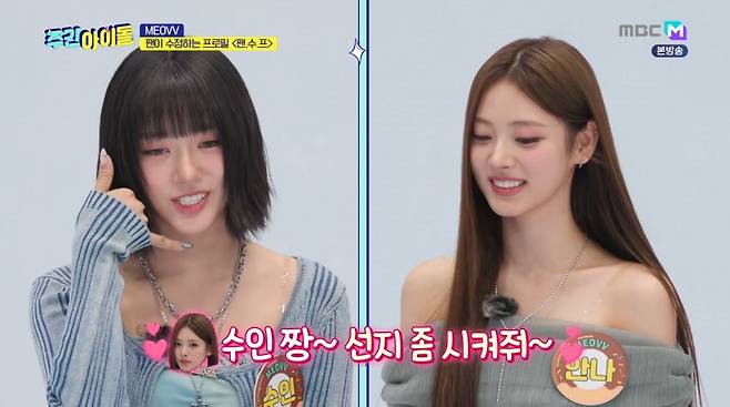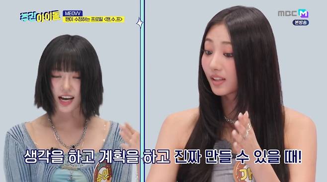 6일 오후 MBC M·MBC에브리원 '주간 아이돌'에서는 '테디 걸그룹'으로 유명한 MEOVV(미야오, 수인·가원·안나·나린·엘라)가 출연, 숨겨진 예능감을 뽐냈다.