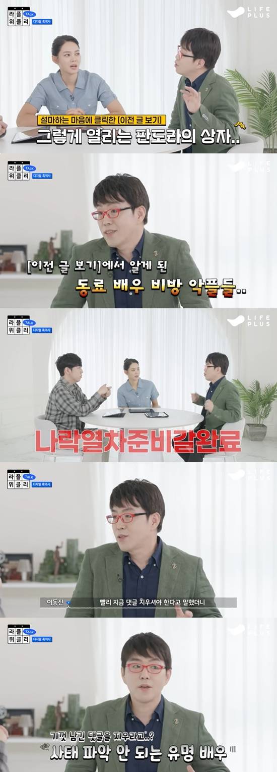 이동진은 "사실 유명한 사람들도 마음에 누군가를 이렇게 싫어하는 마음이 왜 없겠나. 그걸 익명성에 기대서 쓰기도 한다"고 덧붙였다.