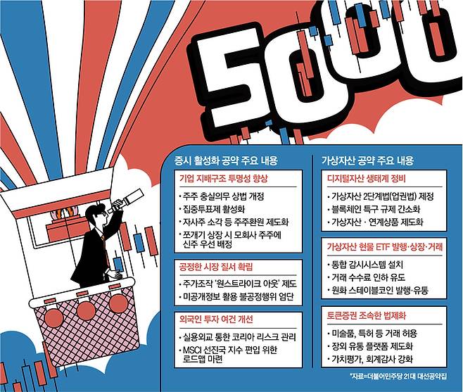 실제로 더불어민주당이 재추진하는 상법 개정안은 ‘이사의 충실의무’ 대상을 기존 ‘회사’에서 ‘회사 및 주주’로 확대하는 게 골자다. 집중투표제와 감사위원 분리 선출 조항까지 담겼다. 이 대통령은 주주의 권익을 강화해 한국 증시가 신뢰를 회복한다면 코스피 5000 돌파도 가능하다는 것이다.