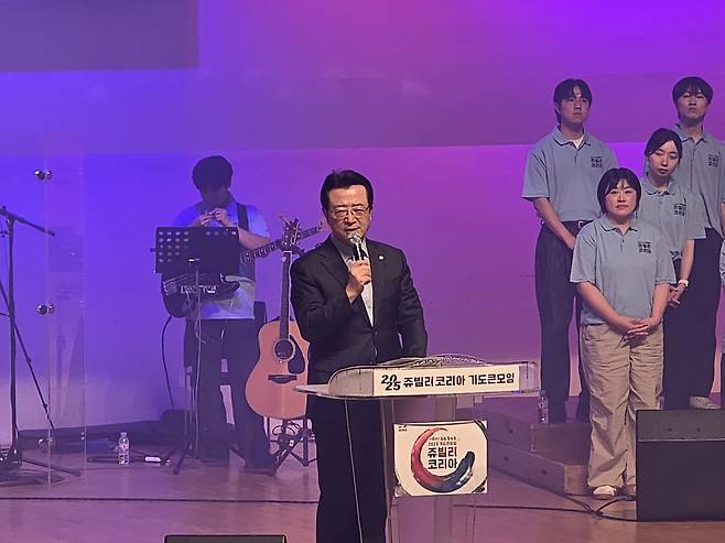 오정현 사랑의교회 목사는 “쥬빌리 통일구국기도회는 22년째 한번도 쉬지 않고 이어오고 있는데 우리는 한번 시작하면 중간에 멈추지 않는다”며 “평양과 북한의 무너진 교회가 회복될 때 복음적 평화통일이 가능하리라 확신한다”고 했다. 이어 “한 사람 한 사람의 기도가 모여 대한민국 역사를 바꿀 것”이라며 “우리가 똘똘 뭉쳐 기도할 때 이 나라가 살고 통일이 이루어질 것을 믿는다”고 역설했다.