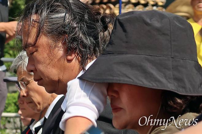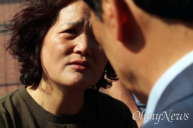 | ▲ 6년 전 태안화력에서 아들 고 김용균씨를 잃은 김미숙 김용균재단 이사장이 유족 옆에 앉아 눈물을 훔치고 있다. |