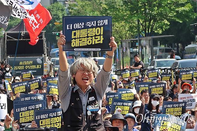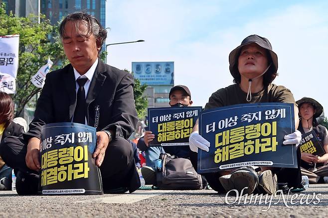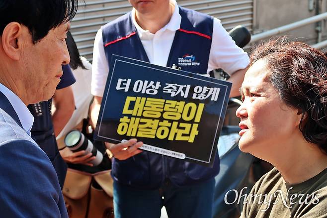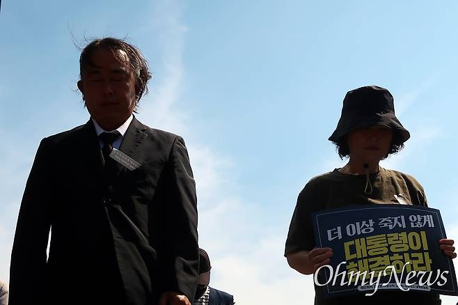 대통령실 앞에서 이들을 만난 강 실장은 "안전 조치가 있었다면 충분히 (죽음을) 막을 수 있었다. 중대재해처벌법 등으로 엄중히 처리해야 할 것"이라며 "국민의 생명과 안전을 가장 중요하게 생각하는 이재명 정부이므로 주신 서한을 잘 전달해 조처가 이뤄지도록 최선을 다하겠다"고 말했다.