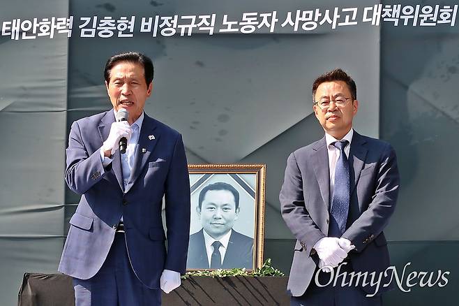 그러면서 "용균이의 추모 사진전 때 국회에서 만난 이재명 당시 당대표의 말을 기억한다. 어려웠던 가정 형편으로 다친 왼팔의 아픔을 이야기했었다"라며 "당선된 이재명 대통령님과 나라의 녹을 먹는 힘 있는 사람들에게 요구한다. 아들 용균이와의 약속을 발전사 비정규직을 살리는 마중물로 삼아달라. 비정규직은 사람이 아닌 듯한 현대판 노예제도를 없애달라"라고 목소리를 높였다.