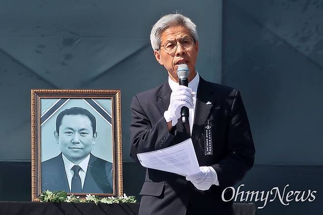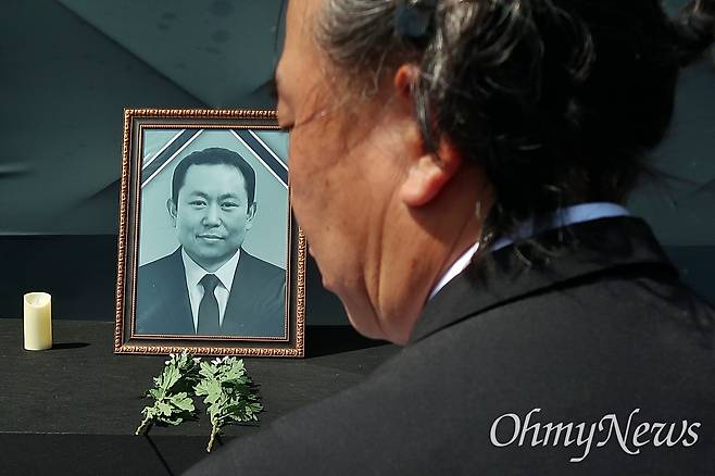 | ▲ 추모제 참석자들이 영정 앞에서 고인을 추모하고 있다. |