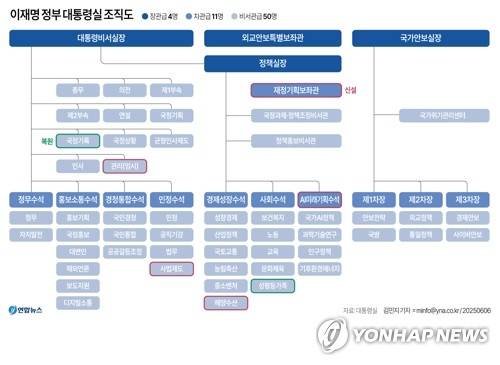 [그래픽] 이재명 정부 대통령실 조직도