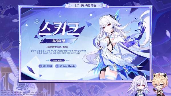 5.7 버전에서는 신규 캐릭터로 타르탈리아의 검술 스승 '스커크'가 등장한다. 스커크는 첫 등장부터 온 몸으로 신비한 기운을 뿜어내며 강렬한 인상을 남긴 캐릭터다. 석 성우는 "이전에 한 번 만난 적이 있는데 의문만 늘어났다"고 회상했다.