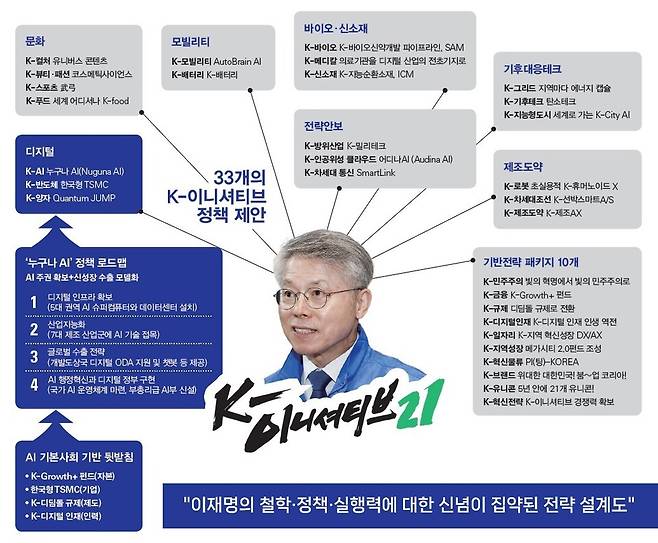 제안서에서 가장 심도 깊게 다루고 있는 정책은 단연 'AI 기본사회' 구현이다(시사저널 6월4일자 「[단독] 이재명이 강조하던 K-이니셔티브 위원회, '부총리급 AI부' 신설 등 액션플랜 제안」 기사 참조). AI를 전문가들의 전유물이 아닌, 누구나 쉽게 만들고 쓸 수 있도록 공공재로 만드는 것이 핵심이다. 이를 위해 보고서는 ①디지털 인프라 확보 ②7대 제조 산업 지능화 ③글로벌 수출 전략 수립 등의 로드맵을 구상했다.