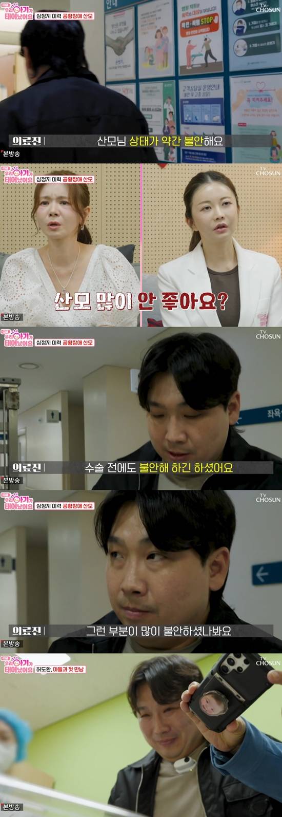 의료진이 허도환에게 “지금 산모님 상태가 약간 불안하다. 수술 전에도 불안해하셨다. 과호흡이 오고 척추마취를 하면서 혈압이 떨어진 게 불안하셨던 것 같다. 저랑 같이 들어가자"라고 말하며 안내했다. 허도환은 "빨리 확인할게요. 공황장애가 있어서 그런가"라고 말하며 급하게 의료진을 따라 들어갔다.