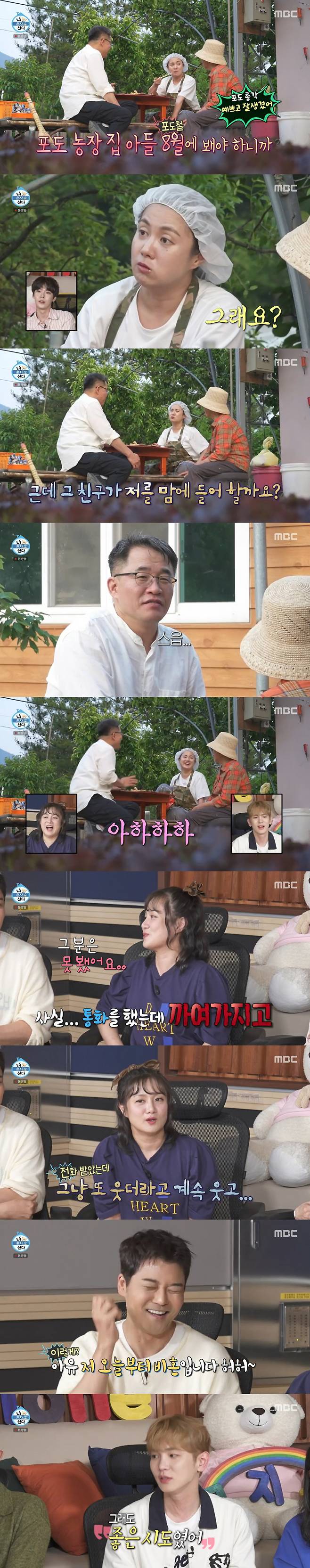이날 박나래는 양 셰프에게 어란 비법을 전수받은 뒤, 셰프의 어머니가 손수 차려준 식사를 함께하며 마을에 젊은 총각이 있는지 물었다. 이에 양 셰프는 "있다. 초등학생도 있다"고 농담을 던진 뒤, "40대 포도 농장 총각이 있다. 결혼도 안 했고, 열심히 산다"고 소개했다.