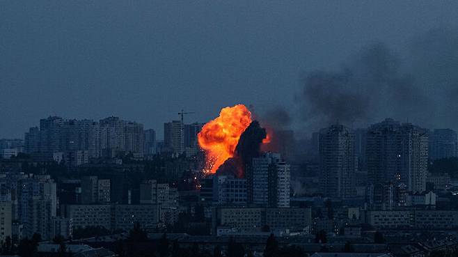 티무르 트카츠헨코 키이우 군사·행정 책임자는 키이우에서 여러 차례 폭발음이 들렸으며 방공망이 드론과 미사일 요격을 시도하면서 발생한 파편이 여러 지역에 떨어져 화재를 일으켰다고 밝혔습니다.