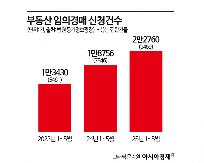 7일 법원 등기정보광장에 따르면 1월부터 지난달까지 임의경매에 따른 매각 소유권 이전등기가 신청된 전국 부동산은 총 2만2760건이었다. 하루 평균으로 환산하면 약 150건이다. 임의경매 신청은 전년 동기(1만8756건) 대비 21.3%, 2023년 동기(1만3430건) 대비로는 무려 69.5% 증가했다.