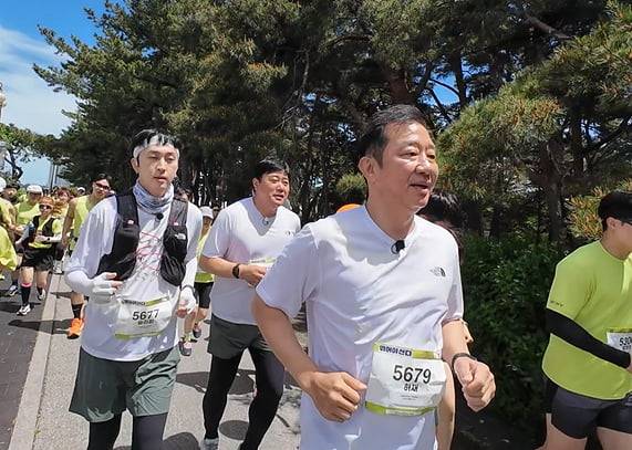 차은우, 입대 2달 전 근황 포착됐다…2300명 사이 달리기 중('뛰산')