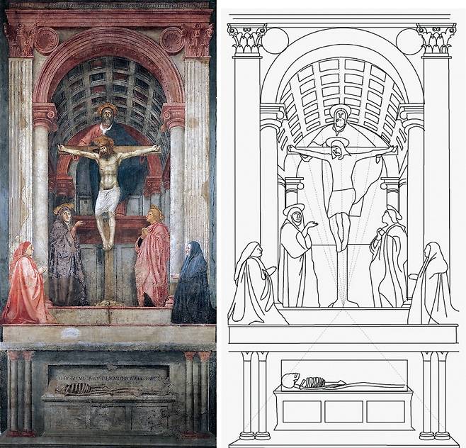 보티첼리는 1445년쯤 가죽 가공 업자의 아들로 태어났습니다. 어린 시절 그는 르네상스 초기에 그려진 걸작들을 보며 그 성과를 흡수했습니다. 회화 역사상 처음으로 ‘체계적인 원근법’을 적용한 마사초(1401~1428)의 그림이 대표적입니다. 멀리 있는 것은 작게 보이고, 가까운 것은 크게 보인다는 것쯤은 마사초 이전의 사람들도 어렴풋이 알고 있던 사실. 하지만 마사초처럼 체계적이고 수학적으로 비율을 계산해 이를 그림에 적용한 사람은 아무도 없었습니다. 마사초 이후 이런 원근법은 서양 미술의 핵심으로 자리 잡게 됩니다.