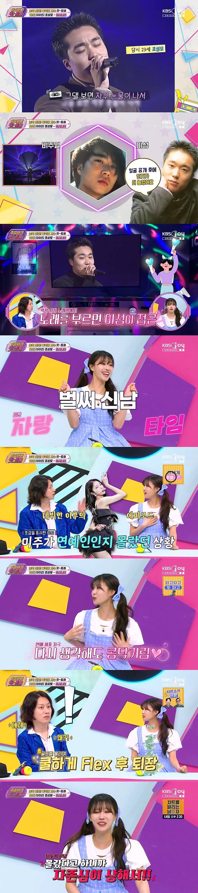 10위는 조성모의 '아시나요(2000)'가 소개됐다. 김희철은 "'아시나요' 한 소절에 우리 반 여학생들이 난리가 났었다"며 "얼굴 없는 가수로 미성만으로 성공했는데 얼굴 공개 후 더 난리가 났다. 목소리랑 너무 잘 맞는 미소년이더라"고 떠올렸다. 이어 그는 "인기가 어느 정도 였냐면, 학창 시절부터 노래방에서 노래를 부르면 헌팅이 들어왔다고 한다"고 했다.