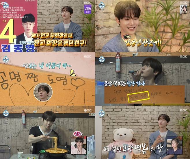 도영은 또 고등학생 시절을 보낸 동네를 찾아 과거의 추억을 되새겼다. 동창과 전화 통화를 나누며 “전교 부회장을 했던 시절이었다. 축제에 나가냐 마냐가 늘 이슈였다. 그만큼 인기가 많았다”라고 밝히며 학창시절의 추억을 소환했다. 이 말을 들은 기안84는 “학교 다닐 맛 났겠다”며 웃음을 지었다. 도영은 추억이 담긴 하굣길에서 후배들과 포토 타임을 갖고, 형 공명과 함께 자주 가던 단골 분식집을 찾아 떡볶이를 먹으며 추억을 곱씹었다. 낙서가 가득한 분식집 벽에는 ‘구리의 성공한 연예인’이라는 문구와 함께 자신과 형의 이름이 적혀 있었고, 이를 보고 공명에게 전화를 걸어 자랑하듯 소식을 전하며 흐뭇한 미소를 지었다.