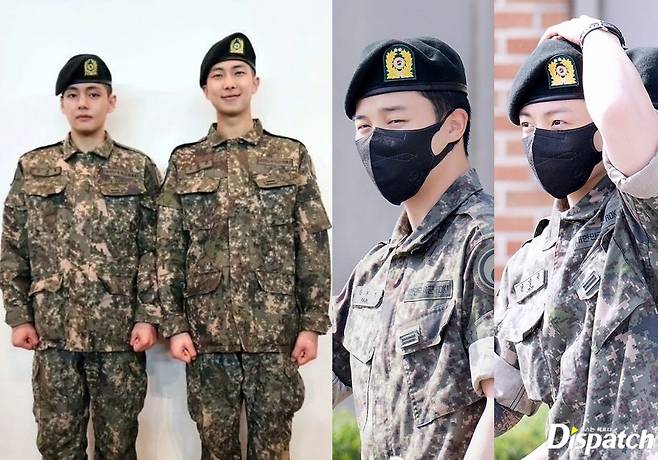 RM은 육군 제15보병사단 군악대, 뷔는 육군 제2군단 군사경찰 특수임무대에서 복무 중이다. 지민, 정국은 육군 제5보병사단에서 복무하고 있다.