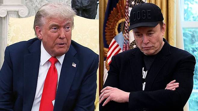 대규모 감세 방안을 포함한 트럼프 대통령의 국정 어젠다를 담은 법안에 머스크가 공개적으로 반대하고 나서면서 이상기류가 흐르던 두 사람은 전날 트럼프 대통령이 독일 총리와의 정상회담 석상에서 머스크에 "매우 실망했다"며 비판하고, 머스크가 소셜미디어(SNS) 댓글을 통해 트럼프 탄핵에 대한 지지를 표명하는 등 강하게 맞서면서 파국적인 충돌을 빚었습니다.