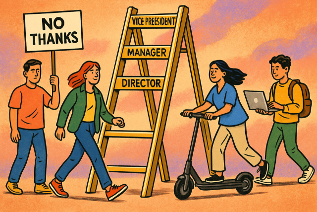 로버트 월터스가 2000명의 화이트칼라 전문가를 대상으로 실시한 설문조사에서 Z세대 응답자의 50%가 중간 관리자 역할을 거부했고, 70%가 이런 직책을 ‘스트레스는 높고 보상은 낮은’ 직무로 봤다고 합니다. 응답자의 3분의 2는 남을 관리하는 것보다 개인적 경력 성장을 선호한다고 답했고요.